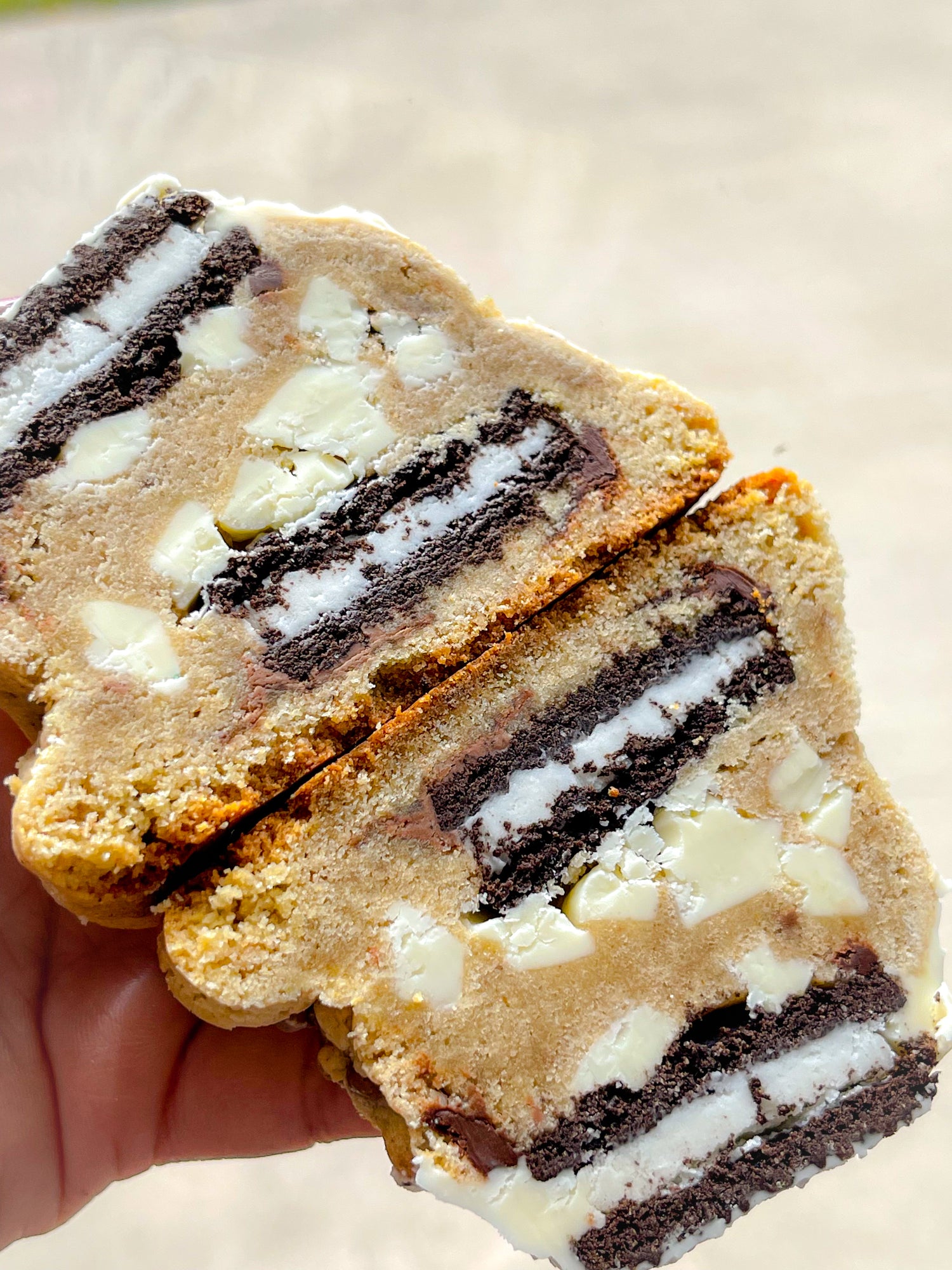 Satisfy your sweet tooth with the delectable GF Dipper! This thick double chocolate chunk cookie is stuffed with gluten-free Oreo and white chocolate chunks then topped with 'nother Oreo - no guilt required! Dipping in milk is totally optional - but highly encouraged.